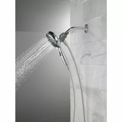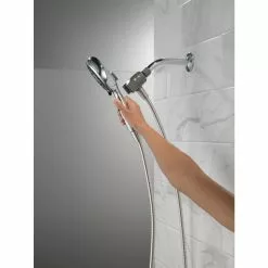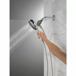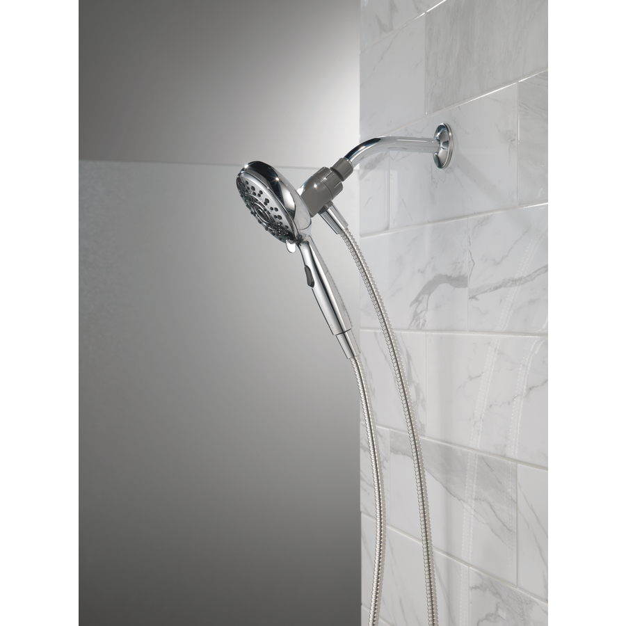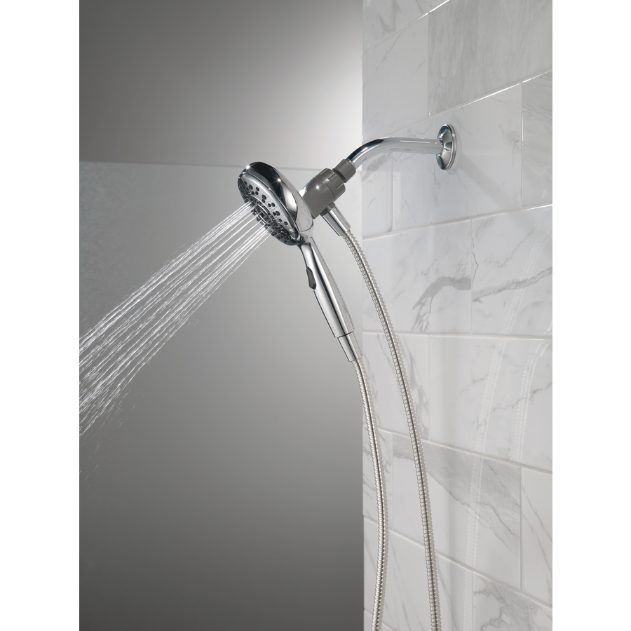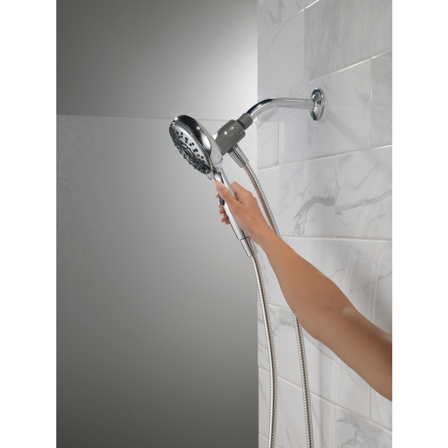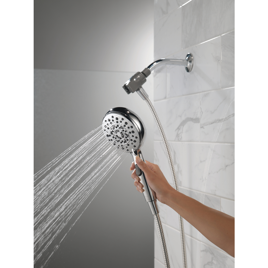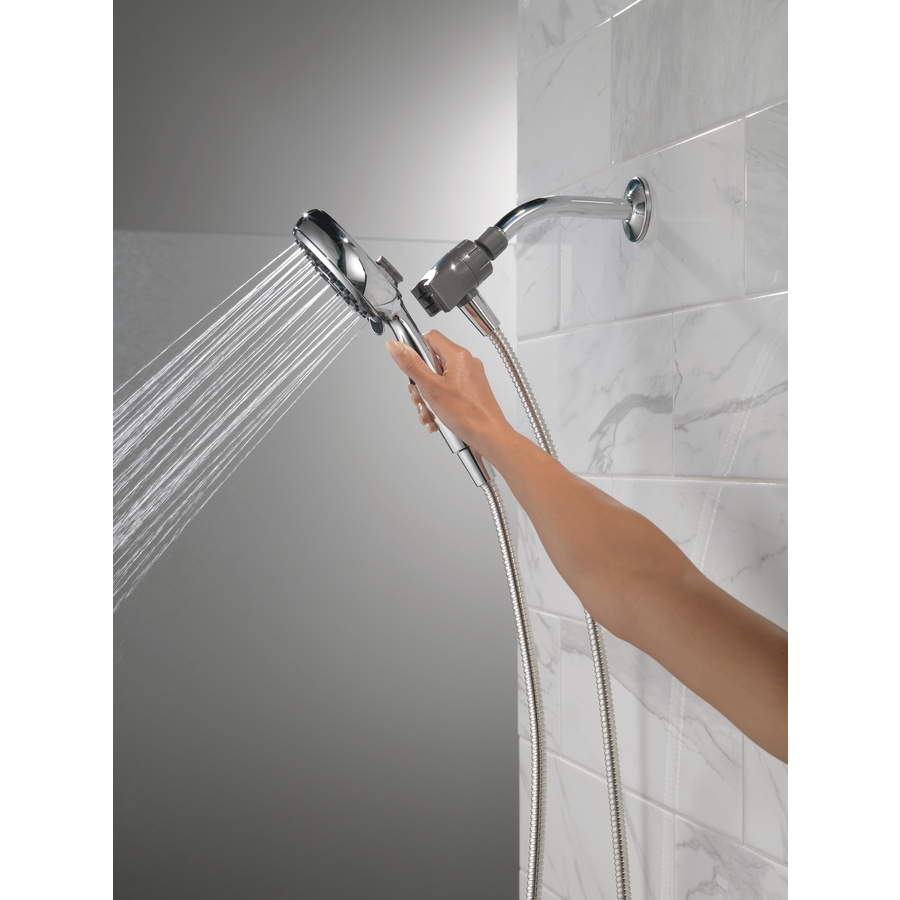 Experience a better shower with the control and flexibility of a Delta hand shower. Great for showering yourself or your loved ones and pets, as well as for keeping your shower and tub clean. SureDock Magnetic hand showers bring reliable docking within reach. An integrated magnet on the back of the hand shower snaps your hand shower into place and holds it there, so it stays docked when not in use and doesn’t droop over time. While other products may gather unsightly mineral build-up over time, Delta soft rubber Touch-Clean spray holes allow any mineral residue to simply be wiped away for an instantly refreshed look, with no need for soaking or the aid of chemical cleaners. The pause setting gives you ample space for shaving, lathering and other shower tasks, without worrying about over spray or water waste. This spray setting helps you conserve water, so you can worry less about depleting your supply of hot water and you help the environment too. Delta WaterSense labelled faucets, showers and toilets use at least 20% less water than the industry standard, helping you save water without compromising performance.