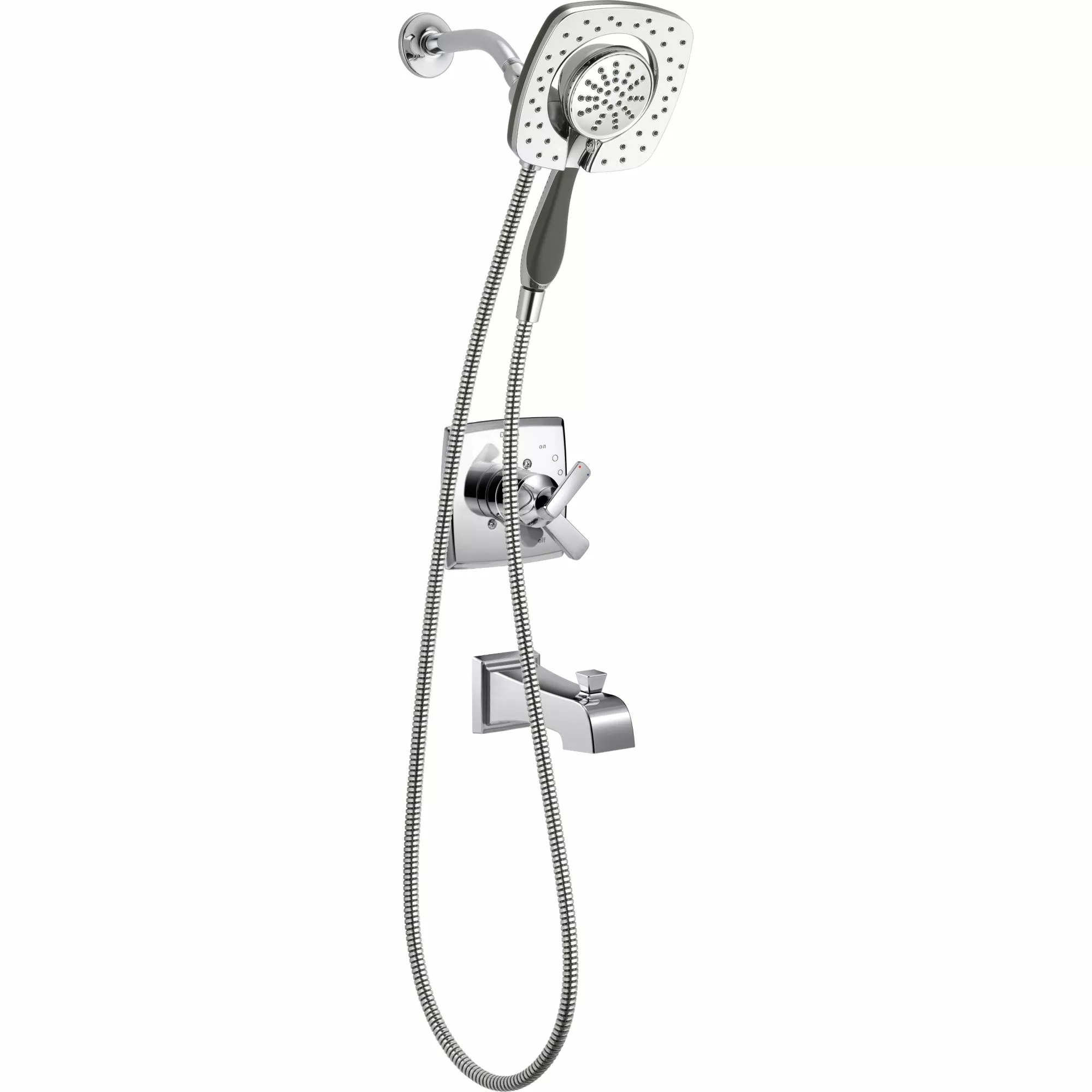 - Diverter lever sets In2ition Three-in-One Shower to one of three options: shower head and hand shower, shower head only and hand shower only