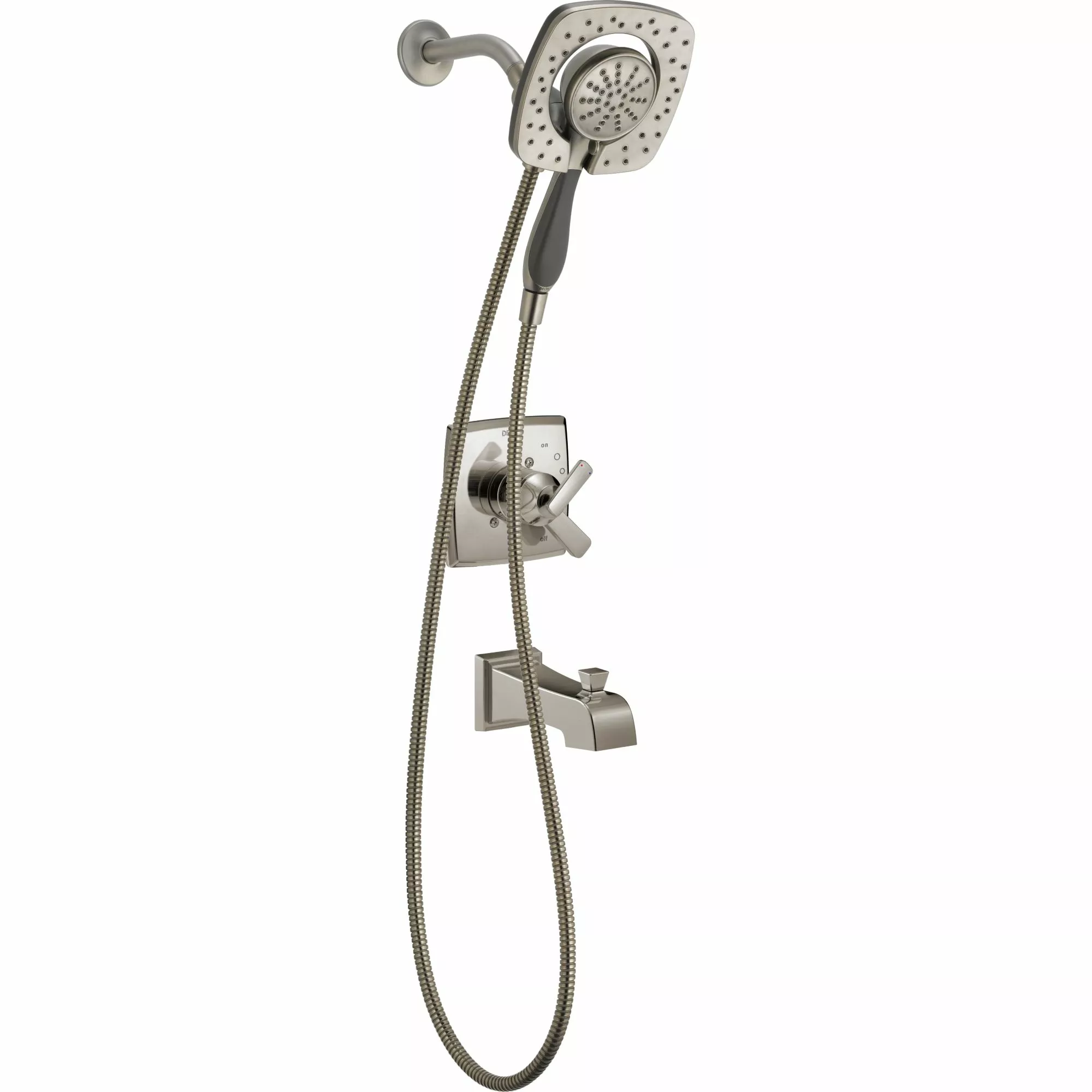 - Diverter lever sets In2ition Three-in-One Shower to one of three options: shower head and hand shower, shower head only and hand shower only