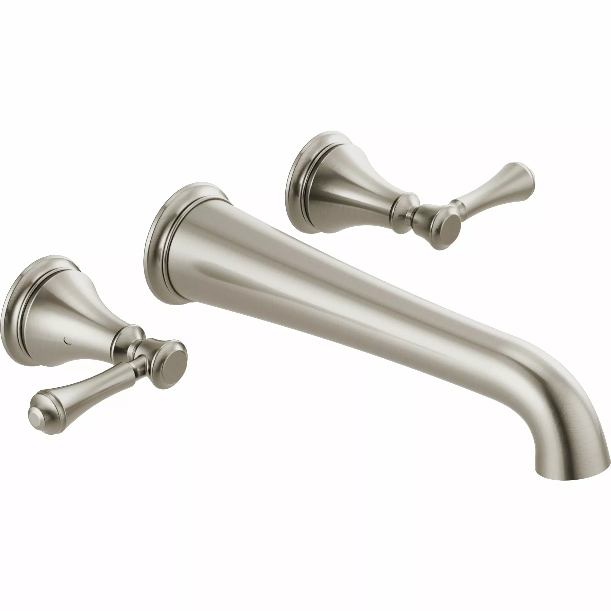 Complete your bath with a beautifully designed Delta Roman tub wall-mount faucet, meticulously crafted to turn heads and enhance your experience. Brilliance(R) finishes are durable, long-lasting and guaranteed not to corrode, tarnish or discolour. This Brilliance Stainless finish has subtle, warm undertones which make it an excellent match with nickel or stainless steel and is extremely versatile, complementing nearly any look, be it traditional, transitional or contemporary. You can install with confidence, knowing that Delta faucets are backed by our Lifetime Limited Warranty.