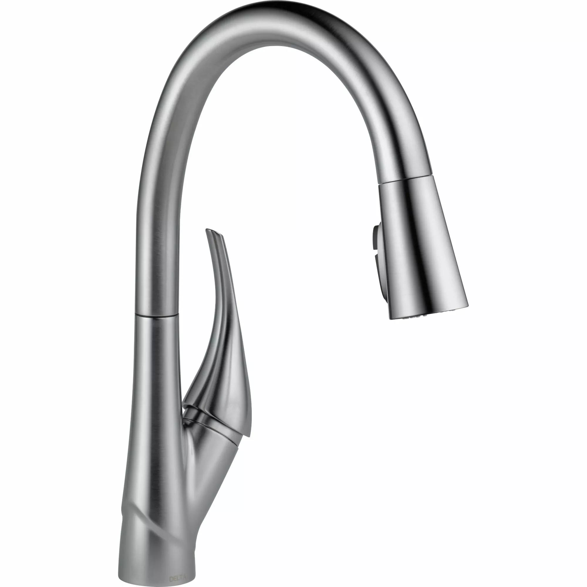 The Esque(TM) Kitchen Collection’s refined curves and cosmopolitan contours give it a clean, poised look that accentuates the fresh modernity of a contemporary kitchen or complements the tranquility of a transitional space. Delta ShieldSpray Technology cleans with laser-like precision while containing mess and splatter. A concentrated jet powers away stubborn messes while an innovative shield of water contains splatter and clears off the mess, so you can spend less time soaking, scrubbing and shirt swapping. Delta MagnaTite(R) Docking uses a powerful integrated magnet to pull your faucet spray wand precisely into place and hold it there so it stays docked when not in use. Delta faucets with Diamond(TM) Seal Technology perform like new for life with a patented design which reduces leak points, is less hassle to install and lasts twice as long as the industry standard.