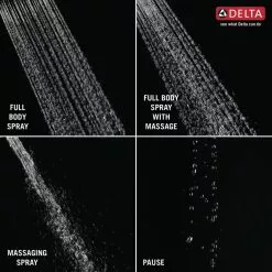 - Spray settings include: Full Body spray, Full Spray with Massage, Massaging spray, and Pause