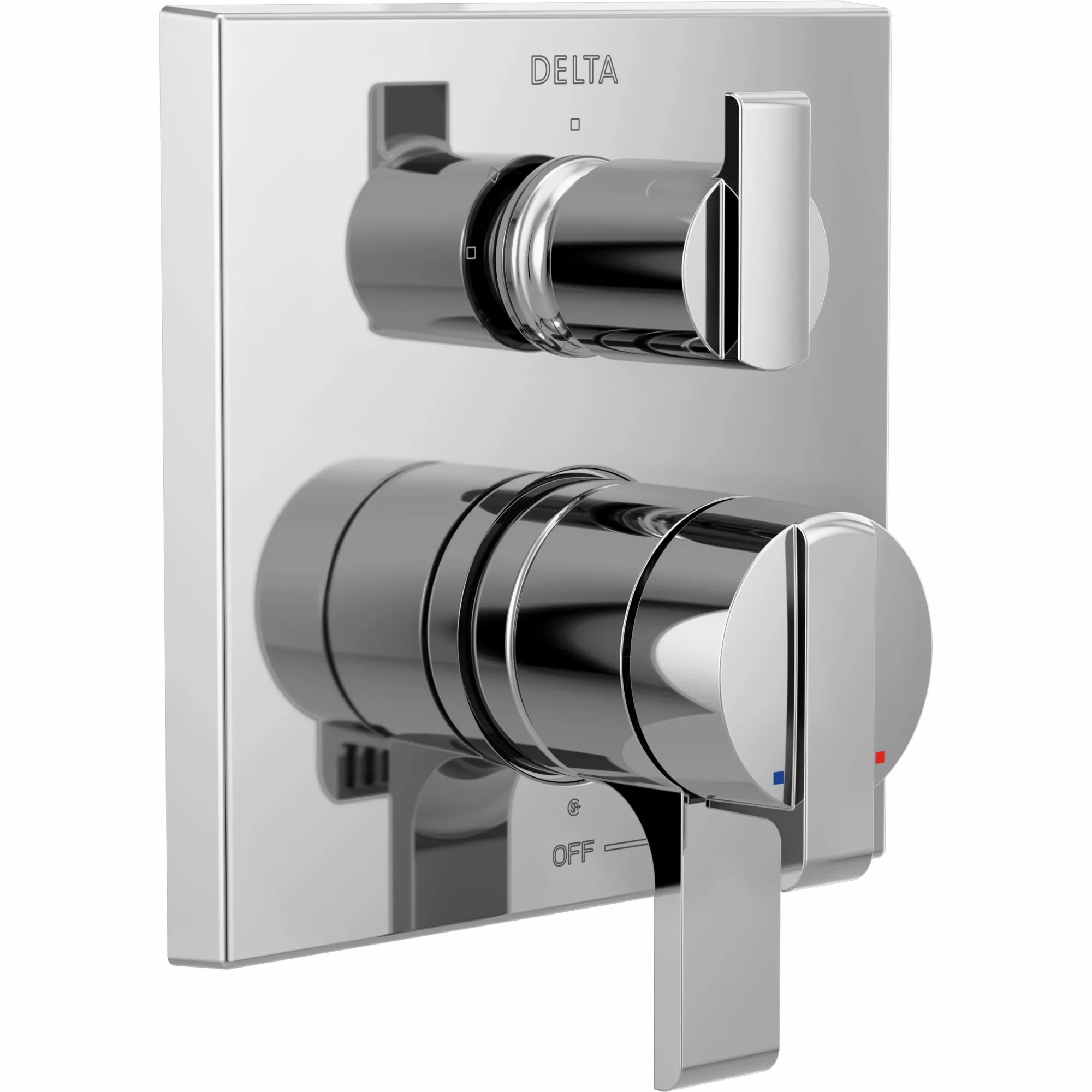 The Delta® MultiChoice® integrated shower 3-setting diverter with 2 handles in chrome consolidates custom shower design with its consumer-preferred streamlined style eliminating the need for an additional diverter valve. With the modern MultiChoice® universal system, you have the freedom to upgrade style and functionality later. And, because there’s no need to alter plumbing behind the wall, you save time, effort and money on future renovation updates.
