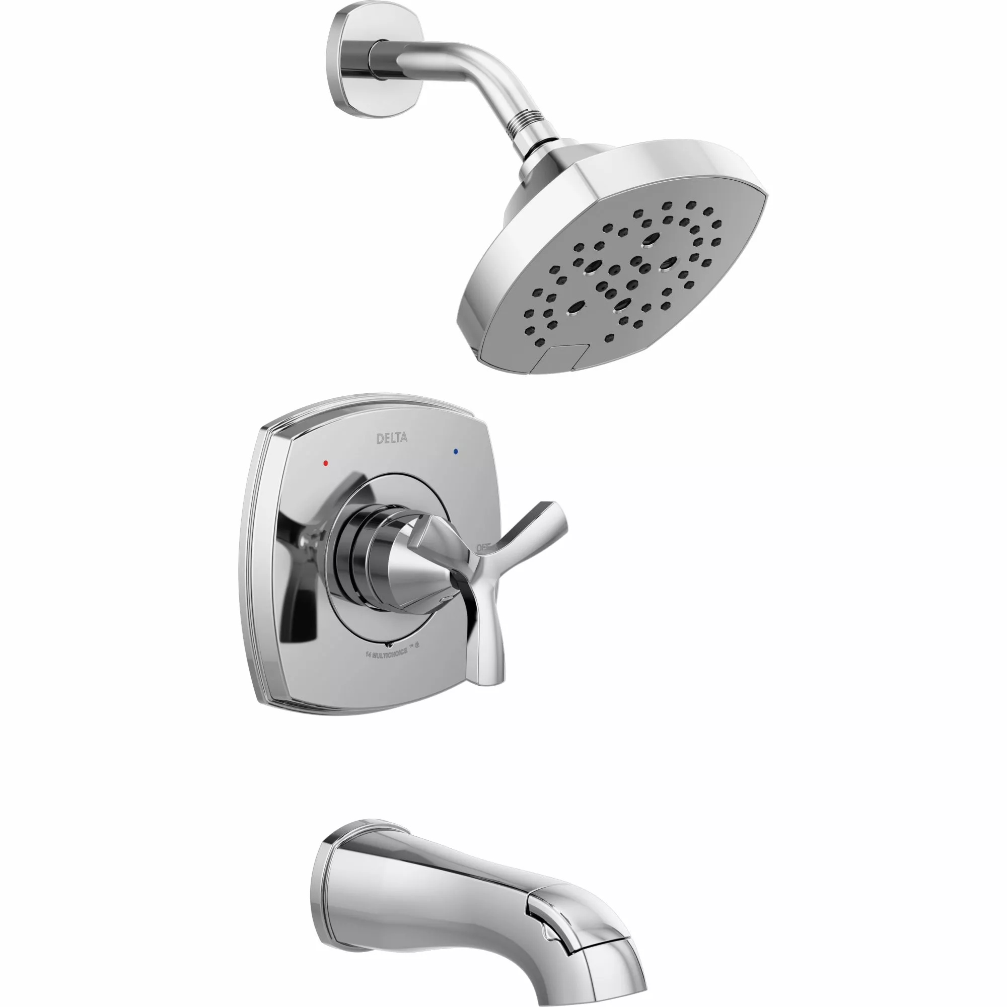 With subtly upturned spout and handles, the Stryke™ Bath Collection radiates confidence and composure with an assured stature and ascending contours. Designed to be integral to both your bathroom’s everyday use and personalized style, Stryke’s 14 Series robust design breathes intrigue into any space in your home. Using advanced technology, H2Okinetic showers sculpt water into a unique wave pattern, giving you 3X coverage of a standard shower head. The result is a shower that provides more coverage, more warmth and more intensity for a truly drenching shower experience. Delta® pressure-balance valves use Monitor® technology to protect you and your family from sudden temperature changes. Delta WaterSense labelled bath and shower trim set in chrome uses at least 20% less water than the industry standard saving you money without compromising performance.